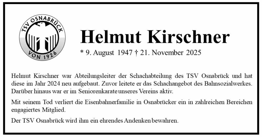 Der TSV Osnabrück trauert um Helmut Kirschner