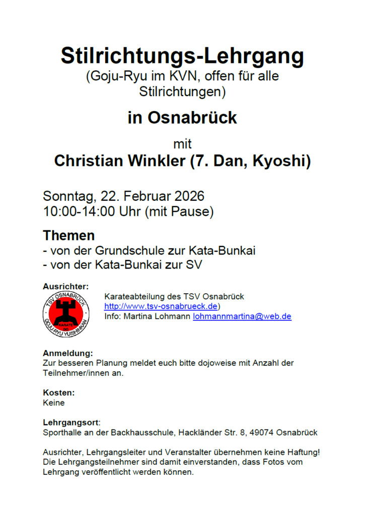 Karate Lehrgang am 22. Februar